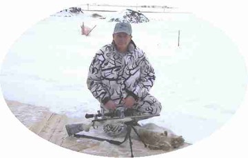 We think this is the current IBS National champion…. we are not sure as the camo is really great and one cannot tell for sure…. anyway the two jackrabbits made a sporty target on the run at 100 yards or so I am sure.